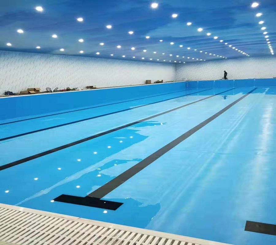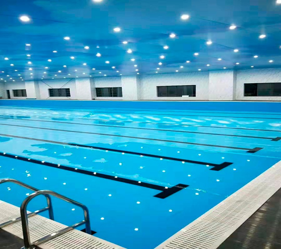 中廣拆裝式泳池(40*20*1.5m)+中廣水處理+中廣新風除濕+中廣歐特斯空氣能泳池恒溫+中廣軟膜天花防水吊頂。