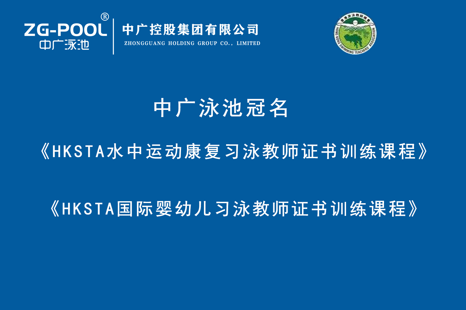 中廣泳池冠名 “HKSTA水中運動康復習泳教師證書訓練”、“HKSTA國家嬰幼兒習泳教師證書訓練”