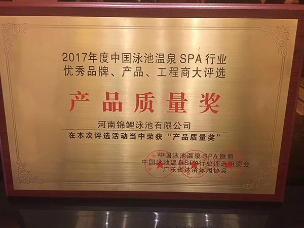 2017年度中國泳池溫泉SPA行業產品質量獎