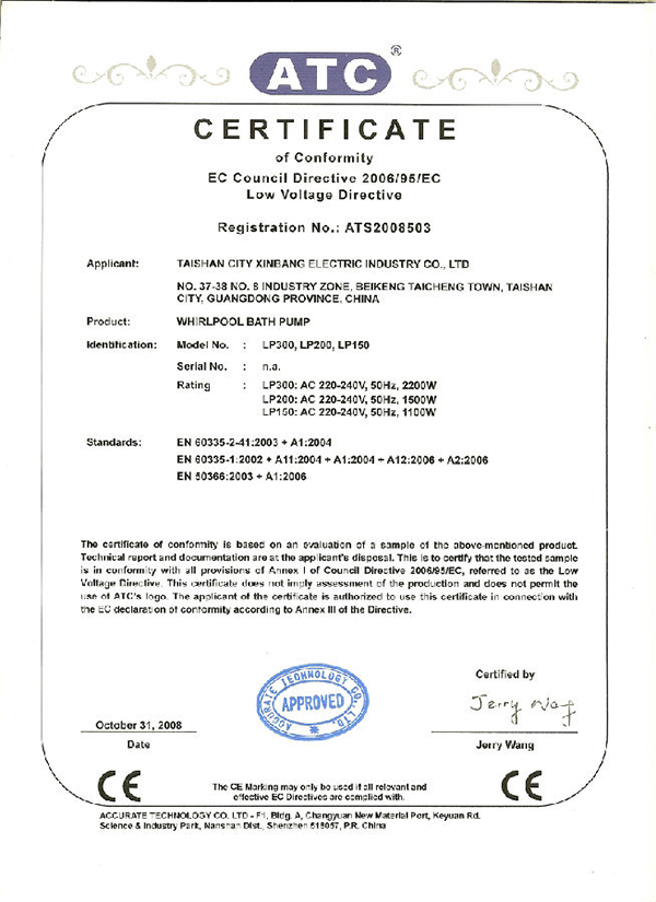 泵 CE certificate